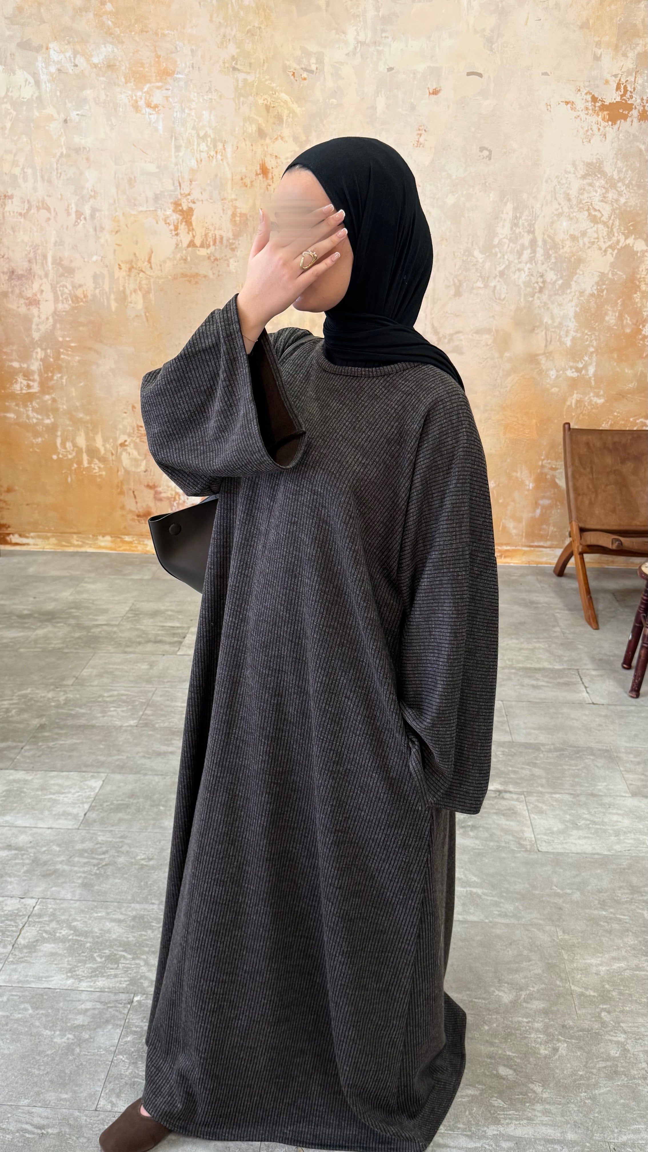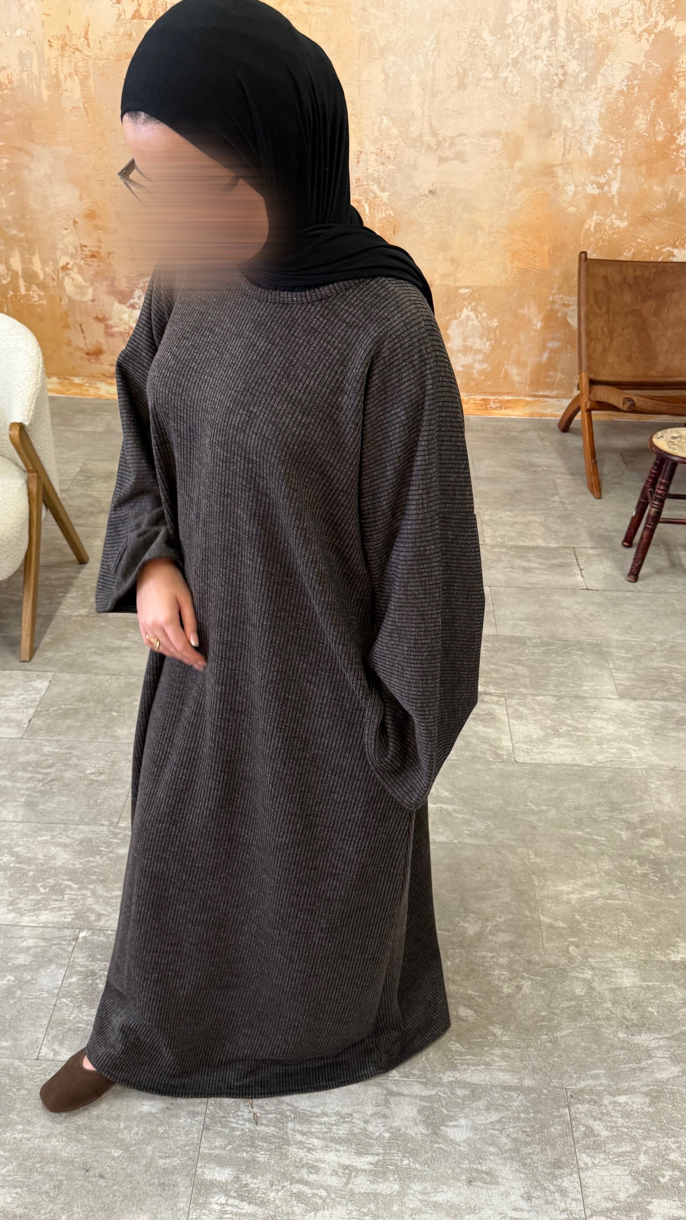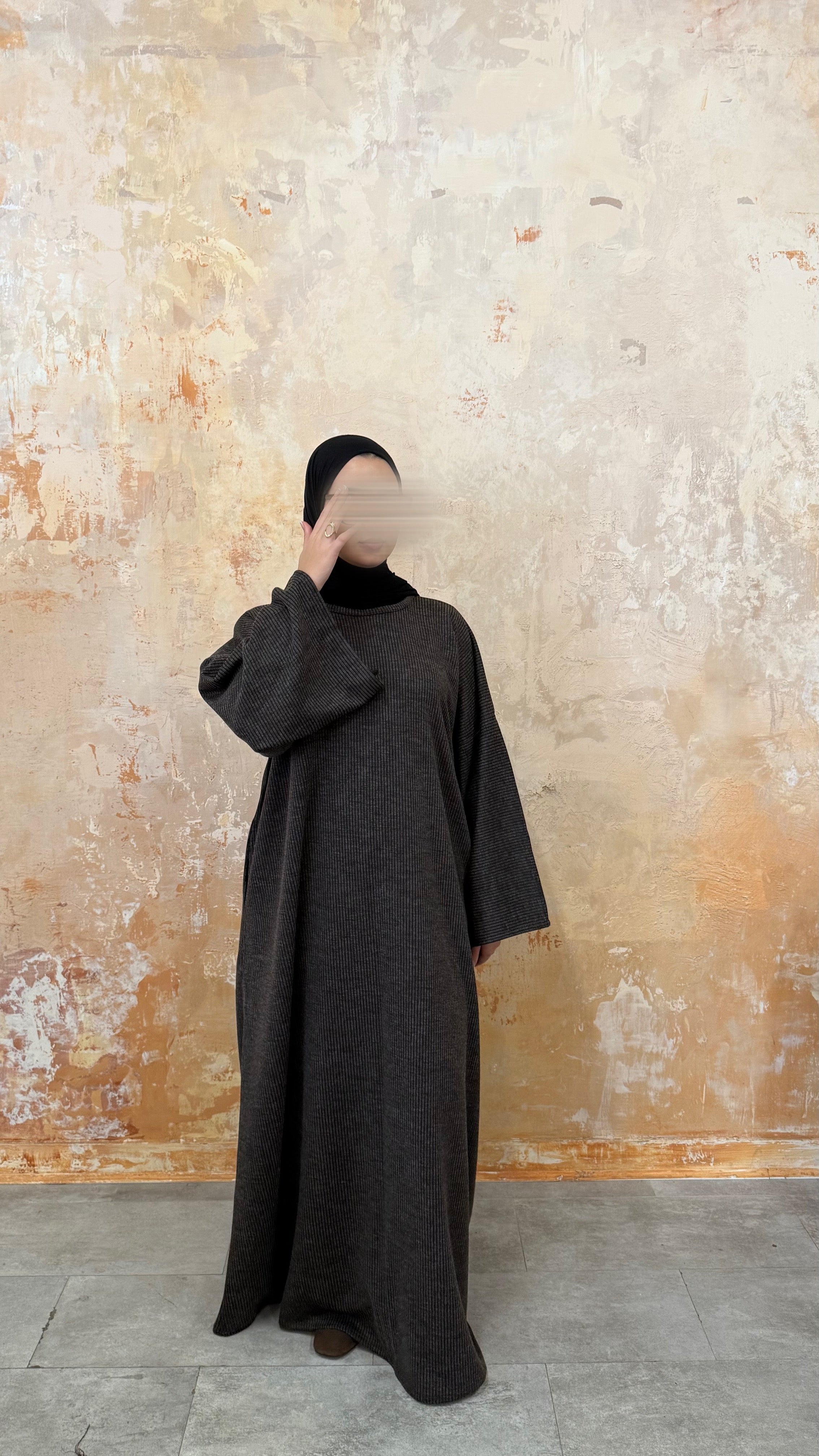 A ribbed, cozy dream for everyday wear. The rib knit gives gentle structure while keeping things soft and comfortable — modest, minimal and easy to style with your favourite coats and abayas.