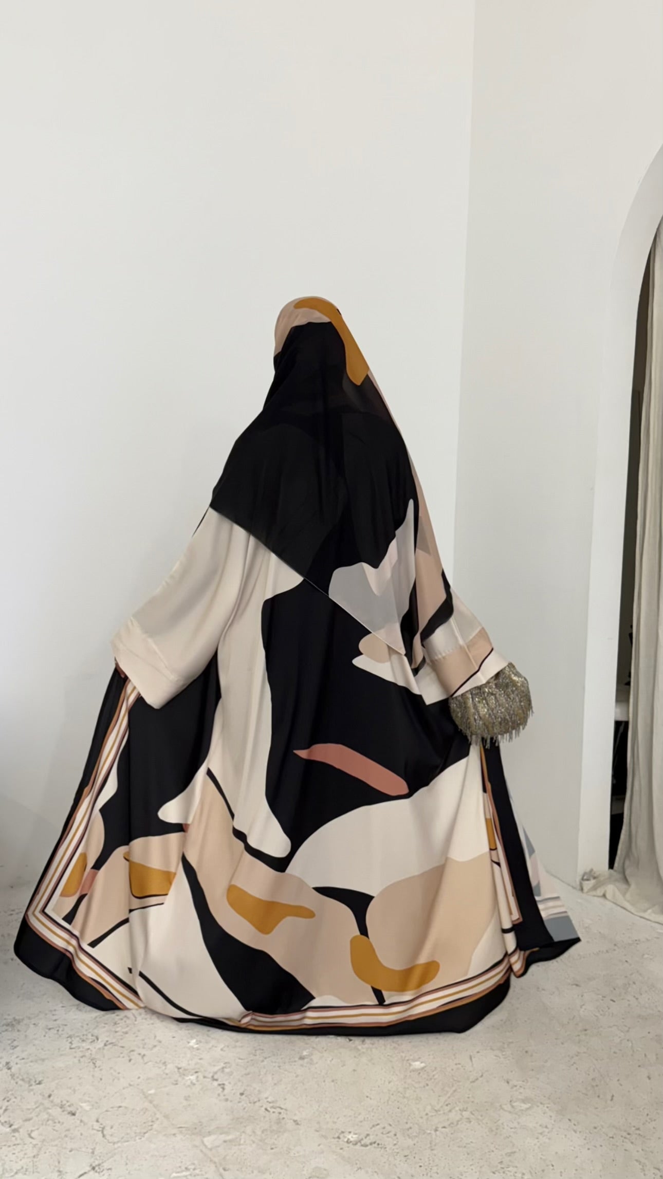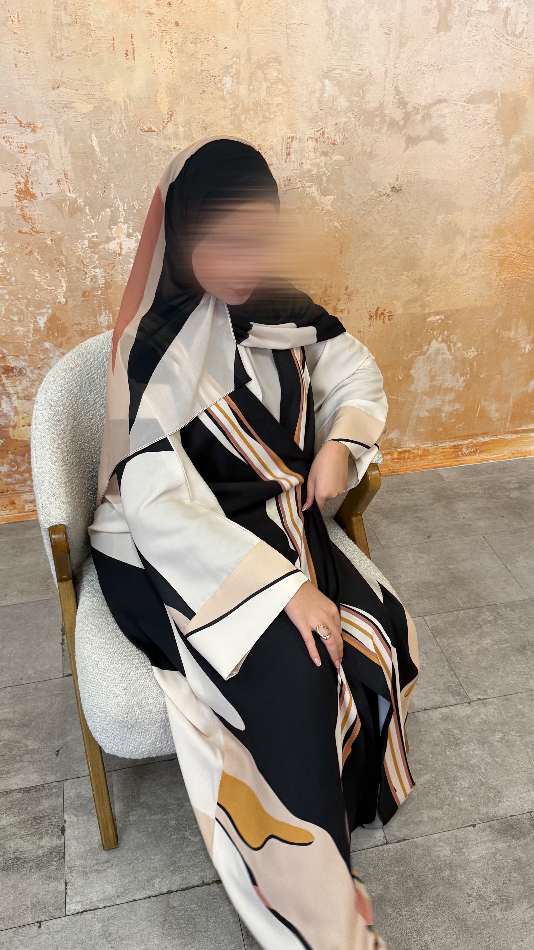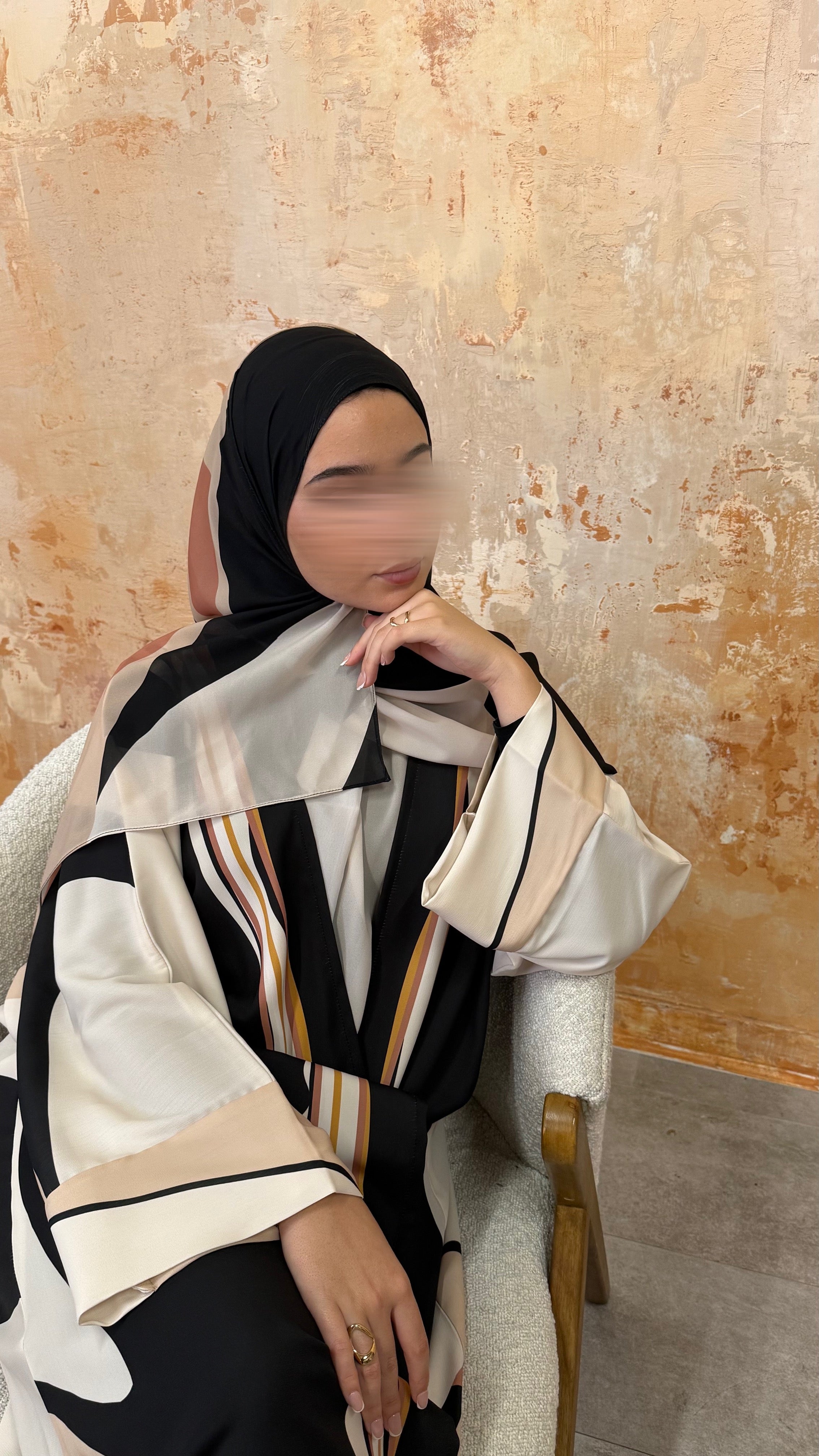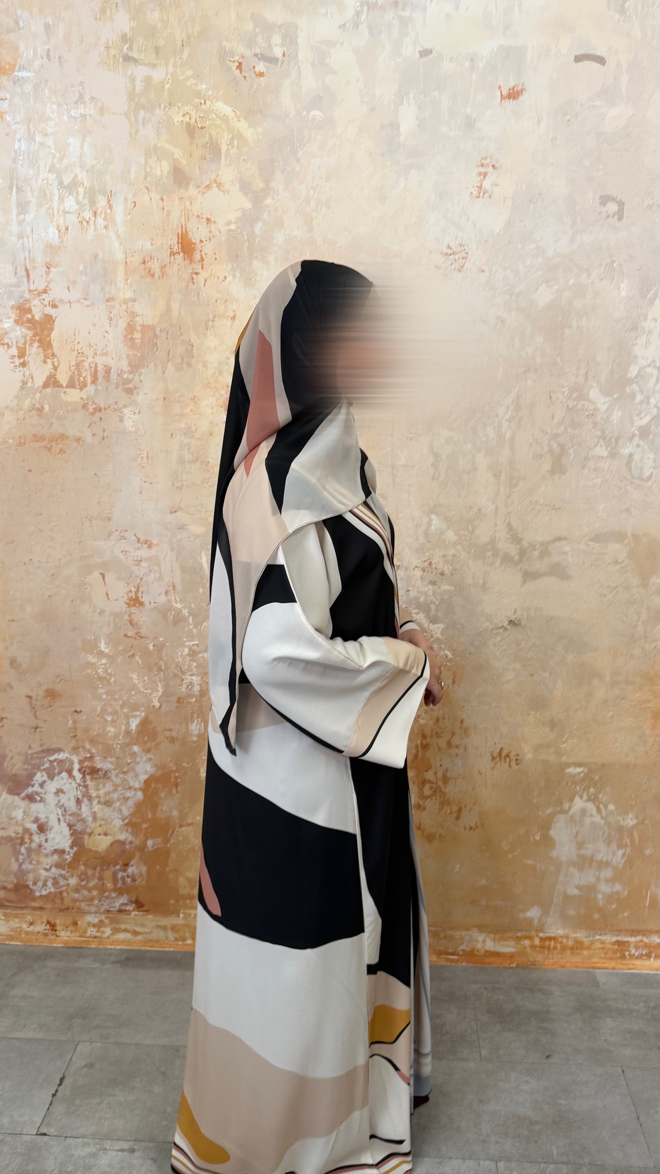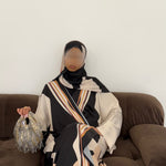 A modern geometric print in warm neutral tones, softly balanced with contrasting lines. Dune Geometry is understated yet refined, offering structure while remaining fluid and easy to wear. Clean, elegant and versatile, this print brings a contemporary edge to modest dressing while staying true to YARA’s soft, elevated aesthetic. Created in limited quantities.